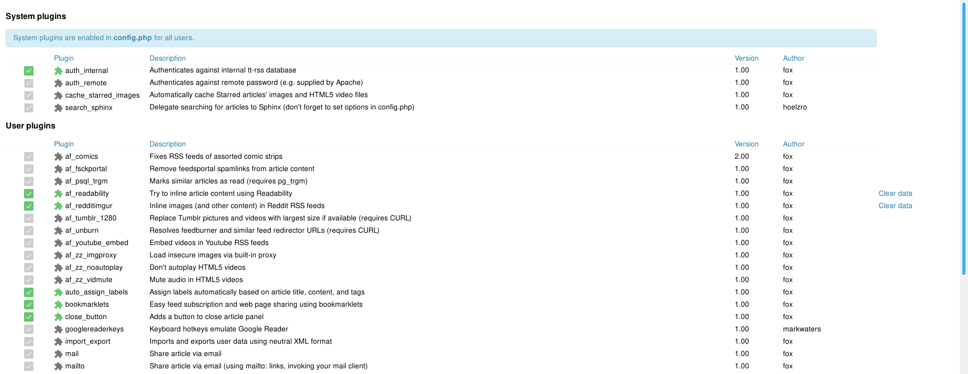 你还可以根据需求启动插件,建议启动 af_readability 插件,对于 RSS Feed 不提供全文输出的网站(如: VICE中国),可以使用该插件转换为全文。
