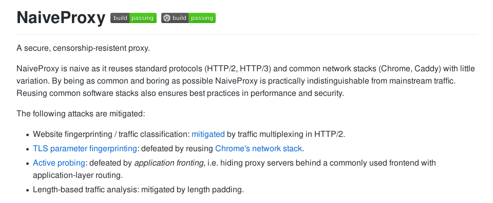 为什么要使用 naiveproxy? 这个问题,直接摘录 naiveproxy 的 README 就可以回答。