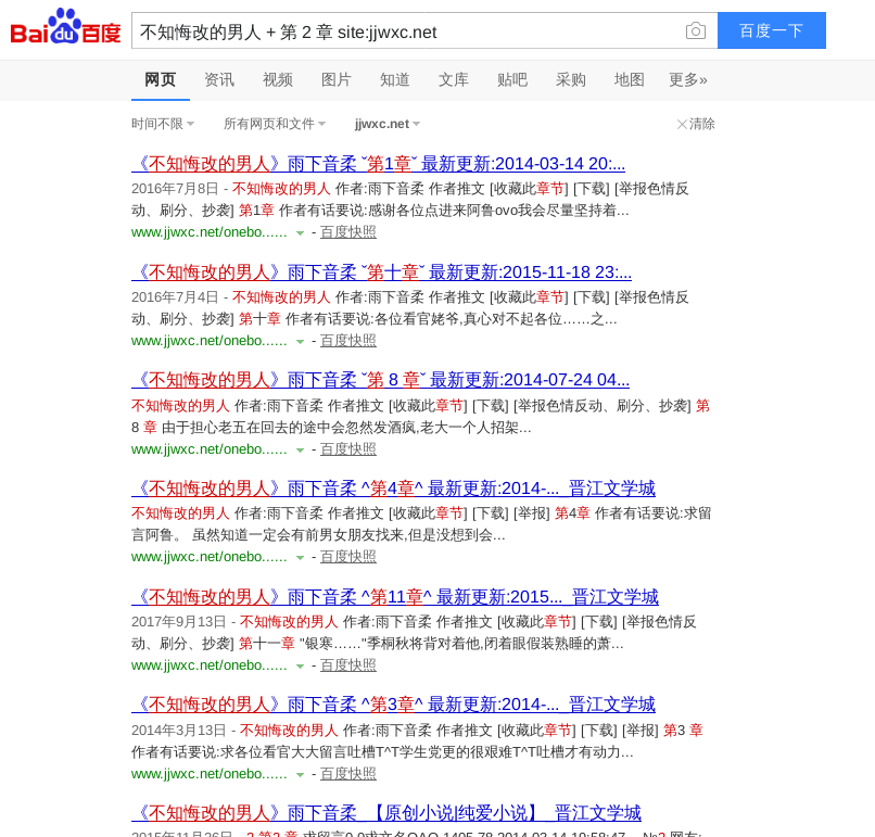 用 不知悔改的男人 site:jjwxc.net 作为关键词在 Google 中进行搜索。