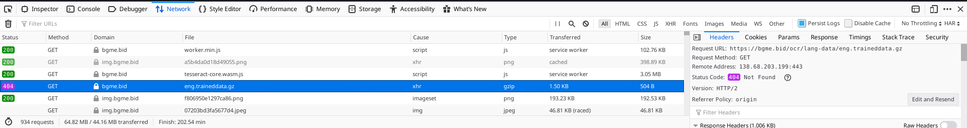 我一直以为这是因为长毛象OCR功能有问题,但直到有一天,我发现 nebula 实例的OCR可以正常工作。随后便到 bgme.me 域名试了一下,发现也是可以工作的。 于是按下 F12,查看网络请求。 搞了半天,原来是我的 nginx 设置有问题呀!