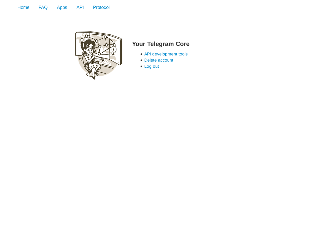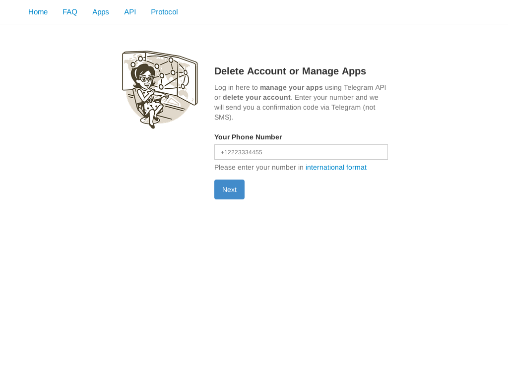 打开 https://my.telegram.org/apps ,输入手机号登录。